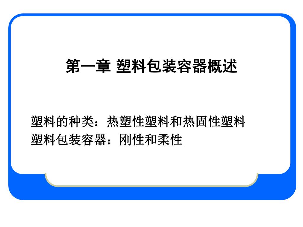 第一章 塑料包装容器概述 塑料的种类:热塑性塑料和热固性塑料 塑料包装容器:刚性和柔性