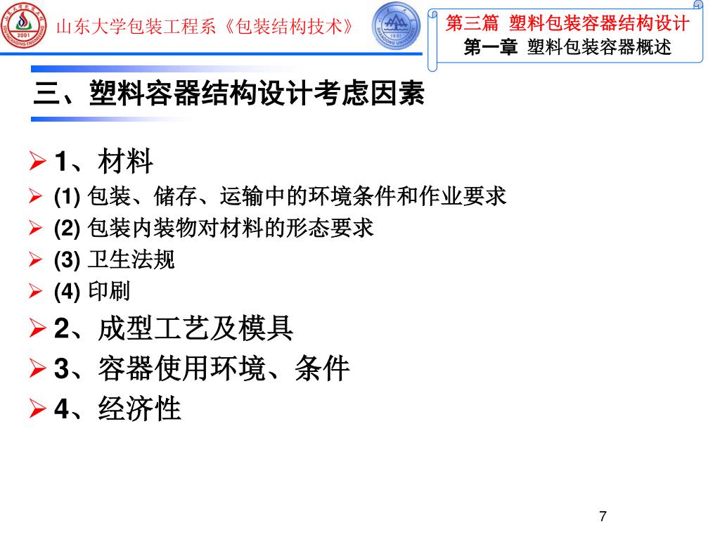 第三篇 塑料包装容器结构设计与制造 山东大学包装工程系