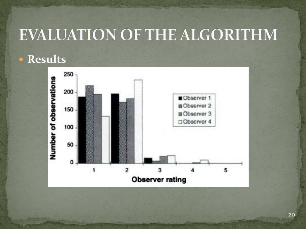 EVALUATION OF THE ALGORITHM • For statistical analysis of the differences between the original and density-corrected images, the Wilcoxon signed-ranks test for matched pairs was used. • As a measure of the above-chance inter-observer agreement, the weighted k for ordered categorical data was calculated for each pair of observers .