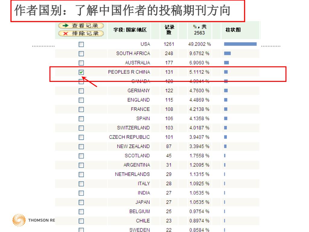 对结果进行二次分析,进行深入数据挖掘 中国作者在此领域发表论文的投稿方向