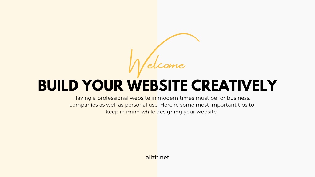 Welcome BUILD YOUR WEBSITE CREATIVELY Having a professional website in modern times must be for business, companies as well as personal use. Here're some most important tips to keep in mind while designing your website. alizit.net