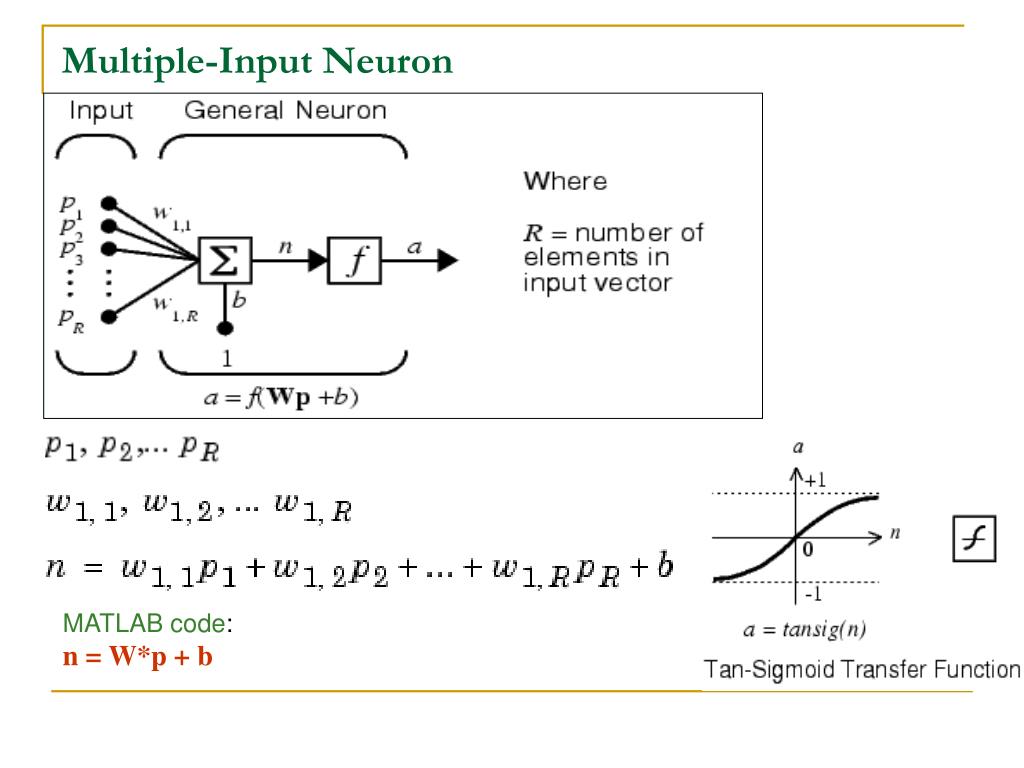 Multiple-Input Neuron MATLAB code: n = W*p + b