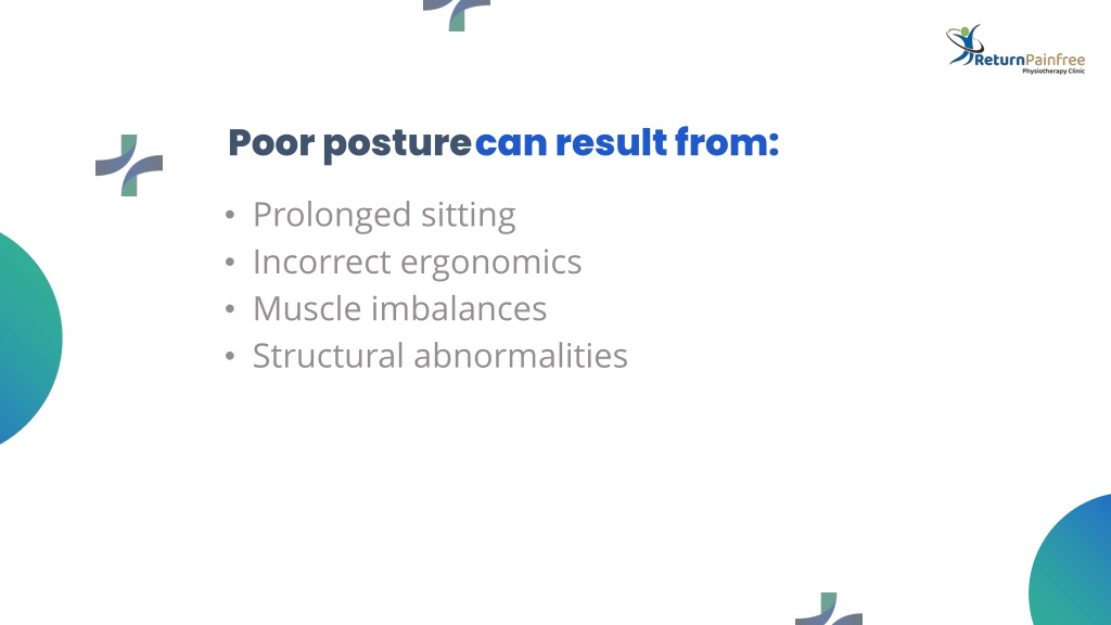 Poor posture • can result from: • Prolonged sitting • Incorrect ergonomics • Muscle imbalances • Structural abnormalities • Outpatient Services • Inpatient Services • Diagnostic Services