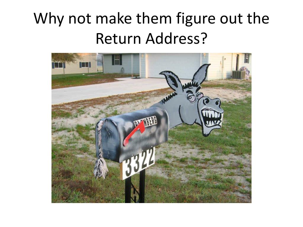Return Address Yep – It’s not over until we formulate a response! (This is the part I really love!)