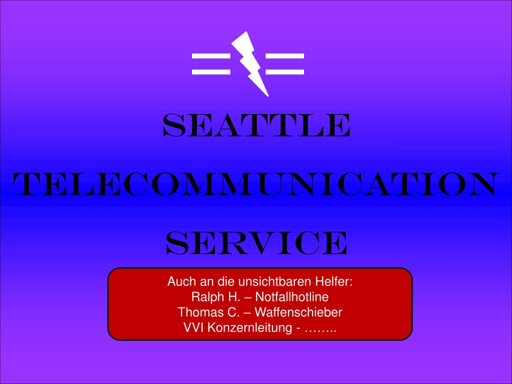 Seattle Telecommunication Service Auch an die unsichtbaren Helfer: Ralph H. – Notfallhotline Thomas C. – Waffenschieber VVI Konzernleitung - ……..