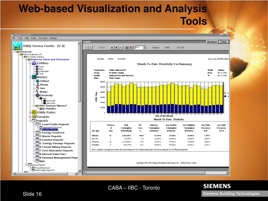 Why Utility Information Services? A full range of utility and energyrelated services: • Utility Bill Audit and Monitoring • Tariff Analysis • Load Profiling • Performance Benchmarking • Enterprise-wide Energy Information Management • Web-based Energy Analysis Tools CABA – IIBC - Toronto