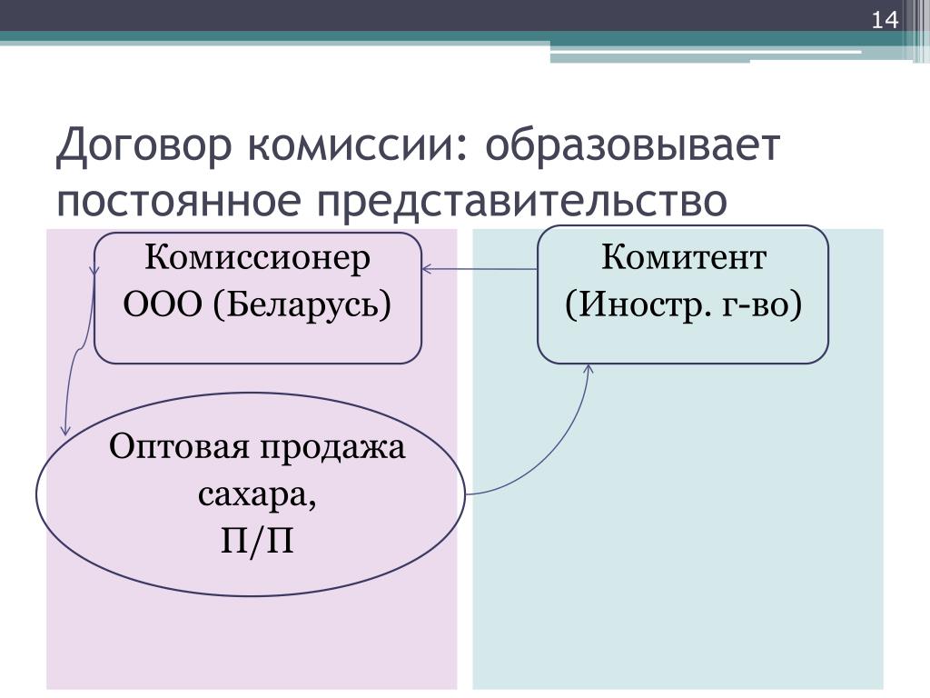 Договор комиссии: образовывает постоянное представительство Комиссионер ООО (Беларусь) Оптовая продажа сахара, П/П Комитент (Иностр. г-во)