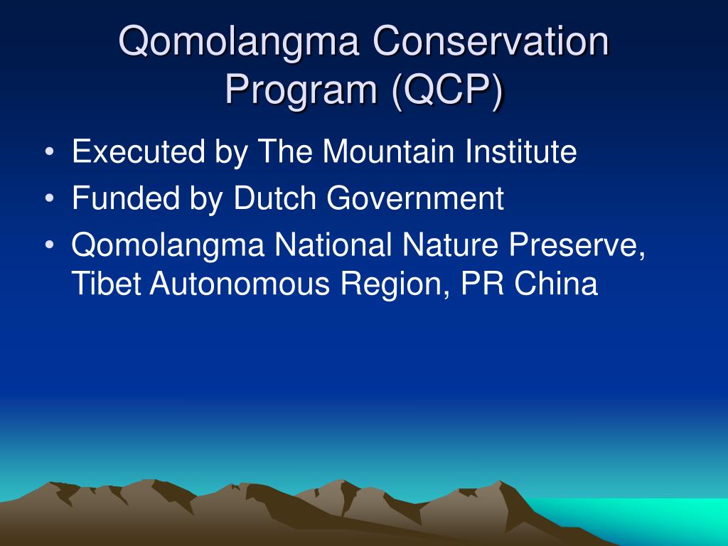 Qomolangma Conservation Program (QCP) • Executed by The Mountain Institute • Funded by Dutch Government • Qomolangma National Nature Preserve, Tibet Autonomous Region, PR China