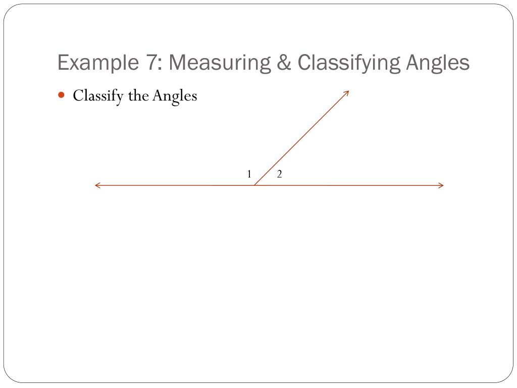 Example 7: Measuring & Classifying Angles • Classify the Angles 1 2