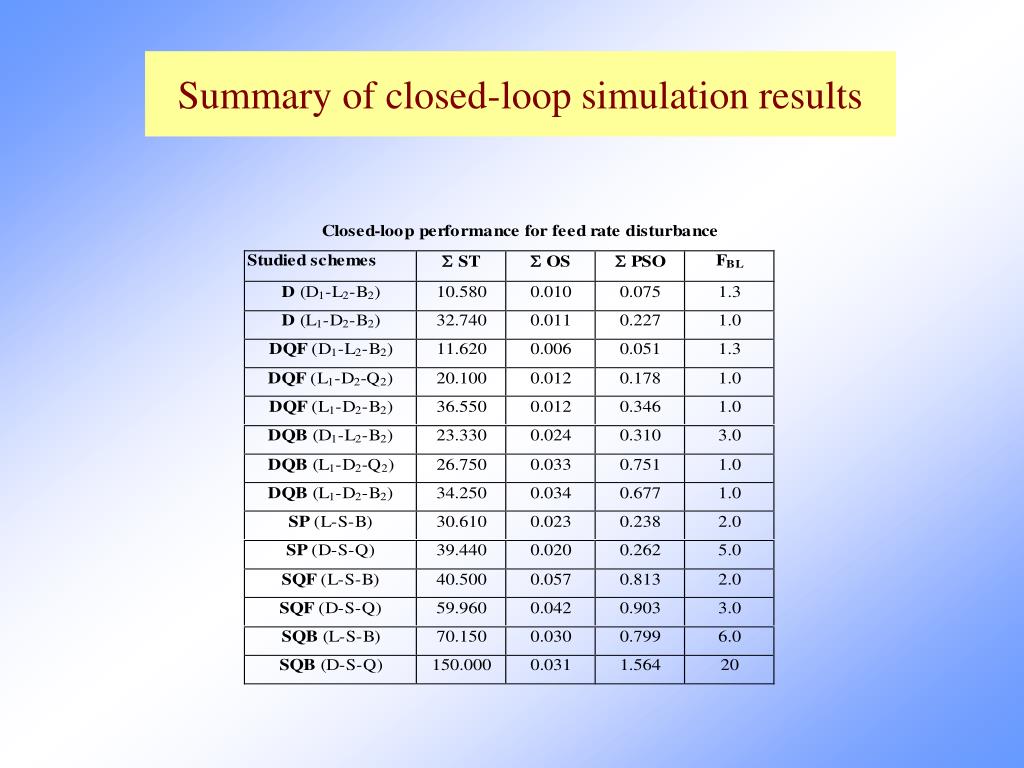 Summary of open-loop simulation results • quite similar dynamic behaviour but • sloppy backward heat integrated (SQB) is the slowest scheme