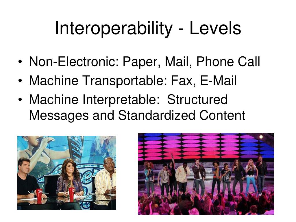 Interoperability: A Non-Technical Perspective Challenges in Healthcare and American Idol Today. Mark Refowitz 8 th Annual CA Information Mgt. Conference April 10,2008. What do Interoperability and American Idol have in Common?.