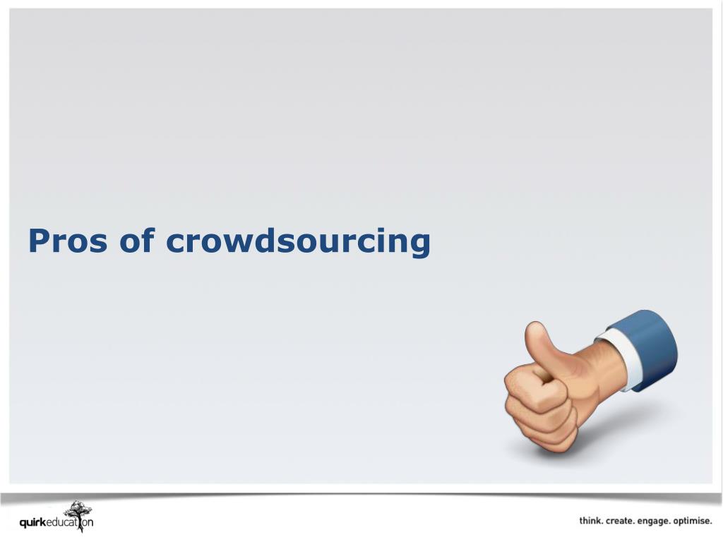 Proper planning is essential! Remunerate communities adequately to avoid a negative PR backlash Use crowdsourcing to tap into the collective knowledge of more than one billion people