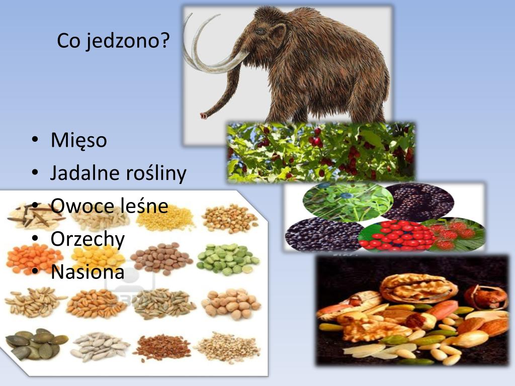 Co jedzono? • Mięso • Jadalne rośliny • Owoce leśne • Orzechy • Nasiona