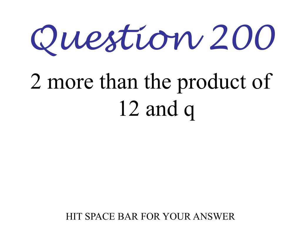 Question 200 2 more than the product of 12 and q HIT SPACE BAR FOR YOUR ANSWER