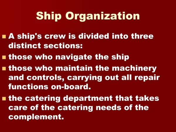 1. Ship Organization A ship's crew is divided into three distinct sections: