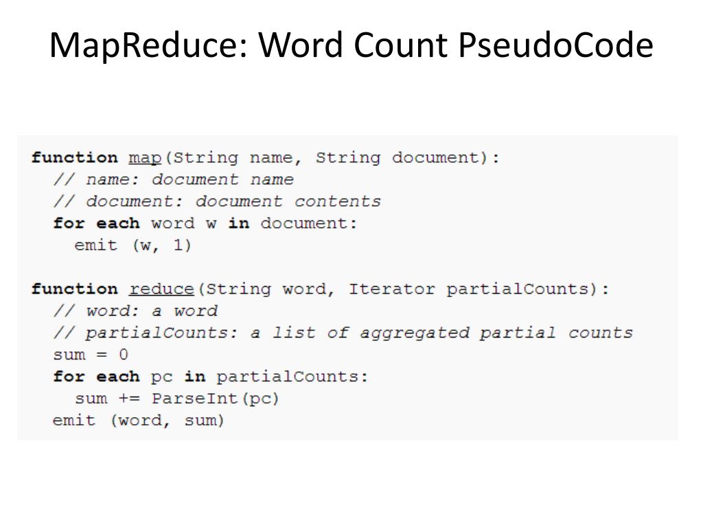 MapReduce(in more detail) • Partition:Assign sets of keymap values to reducer machines • Shuffle: Data are moved from mappers to reducers (e.g., using DFS) • Comparison/Sort: Each reducer sorts the data by key using a comparison function • Sort is taken care of by the framework How might Partition work in the word-count case?