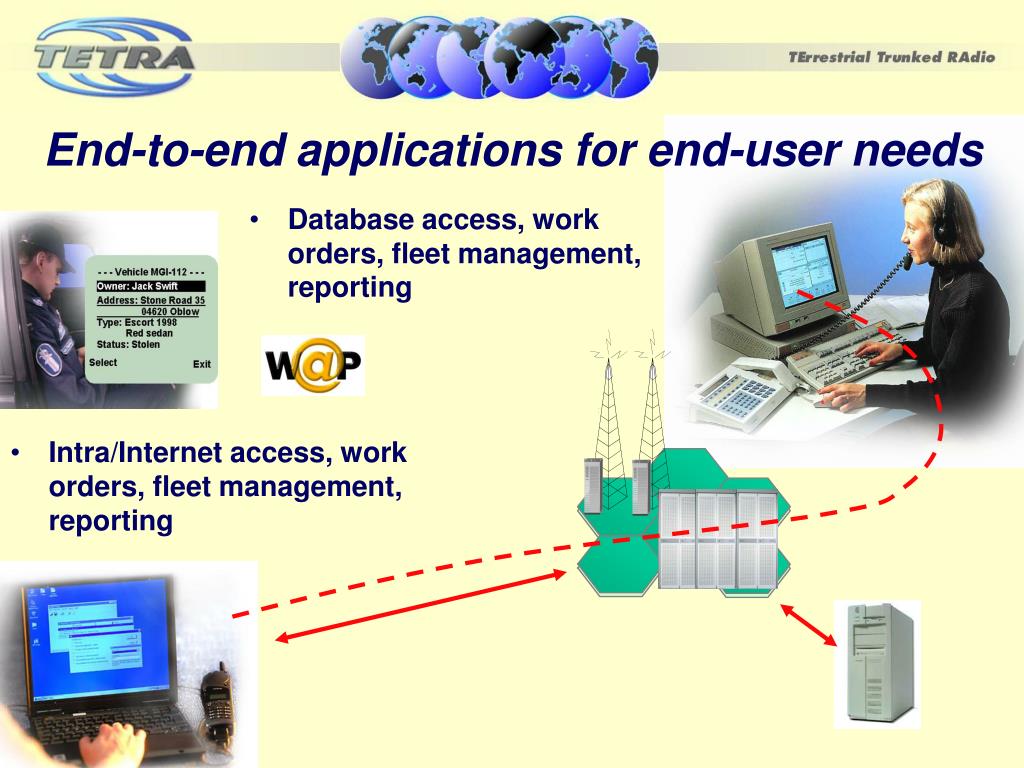 End-to-end applications for end-user needs • Database access, work orders, fleet management, reporting • Intra/Internet access, work orders, fleet management, reporting