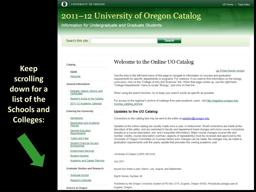 Important Resources • University Catalog Online • Information about Majors • Detailed degree requirements • Student Handbook • Information about General Education • Information about Campus resources • Academic Advising Website: http://advising.uoregon.edu/