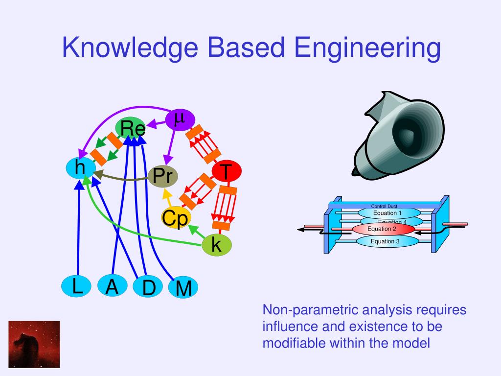 Knowledge Based Engineering m Re h T Pr Cp k L A D M Non-parametric analysis requires influence and existence to be modifiable within the model