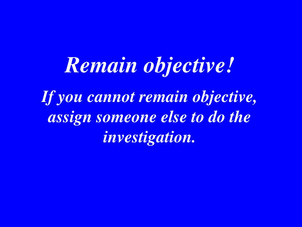 Remain objective!If you cannot remain objective, assign someone else to do the investigation.