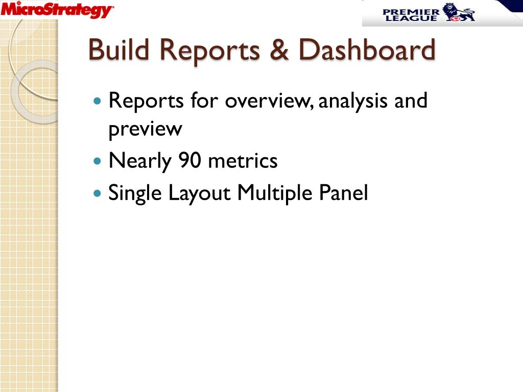 Build Reports & Dashboard • Reports for overview, analysis and preview • Nearly 90 metrics • Single Layout Multiple Panel