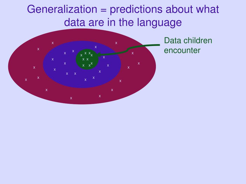 Generalization = predictions about what data are in the language Data children encounter x x x x x x x x x x x x x x x x x x x x x x x x x x x x x x x x x x x x