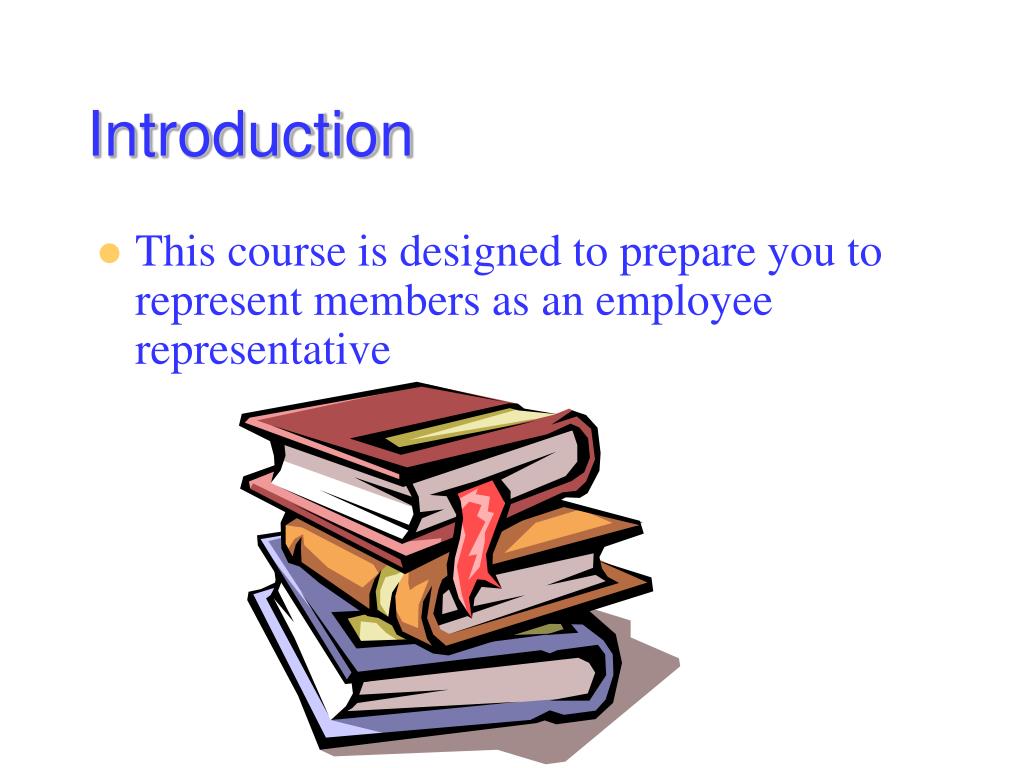 Introduction • This course is designed to prepare you to represent members as an employee representative