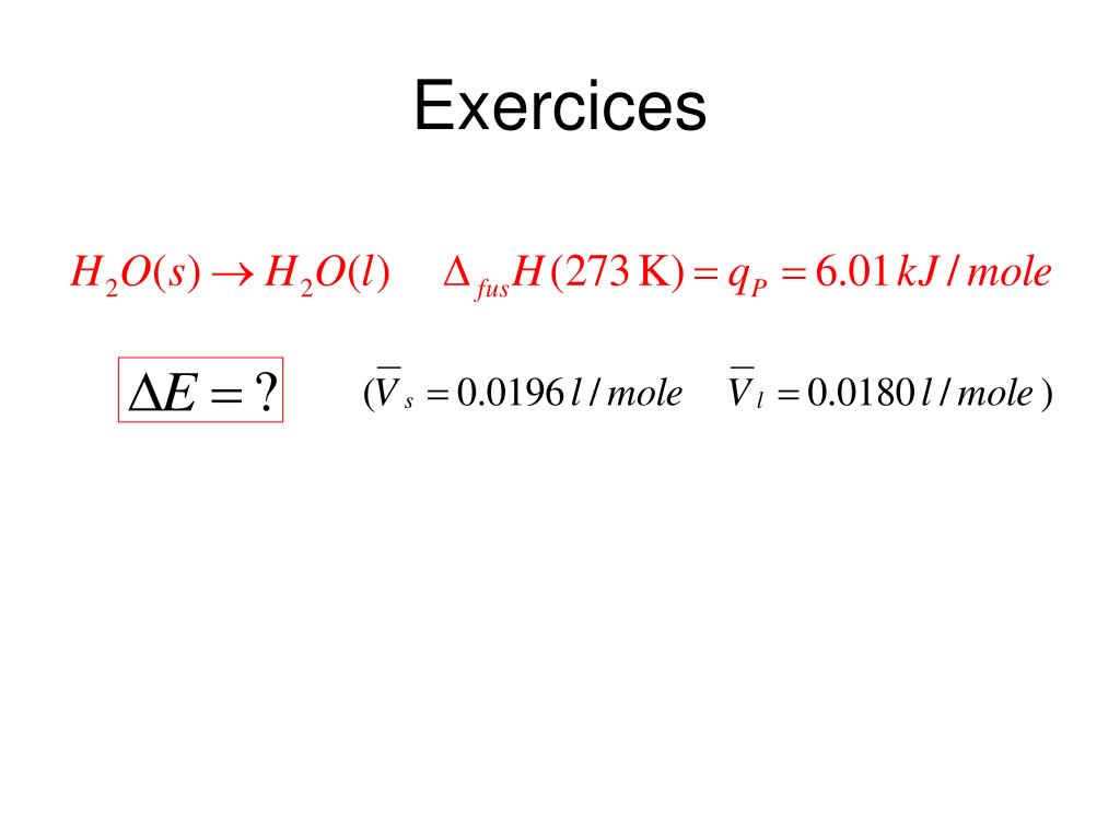 Exercices • Travail réversible vs. irréversible • Calcul de w et q pour les 2 cas