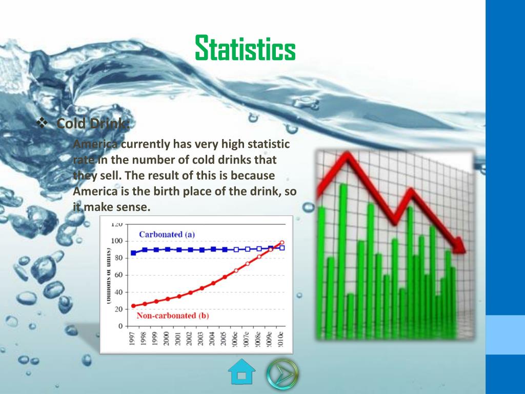 Statistics • Cold Drink: America currently has very high statistic rate in the number of cold drinks that they sell. The result of this is because America is the birth place of the drink, so it make sense.