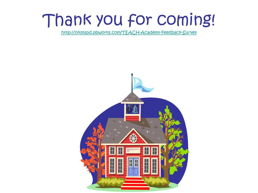 Thank you for coming!http://oitmspd.pbworks.com/TEACH-Academy-Feedback-Survey