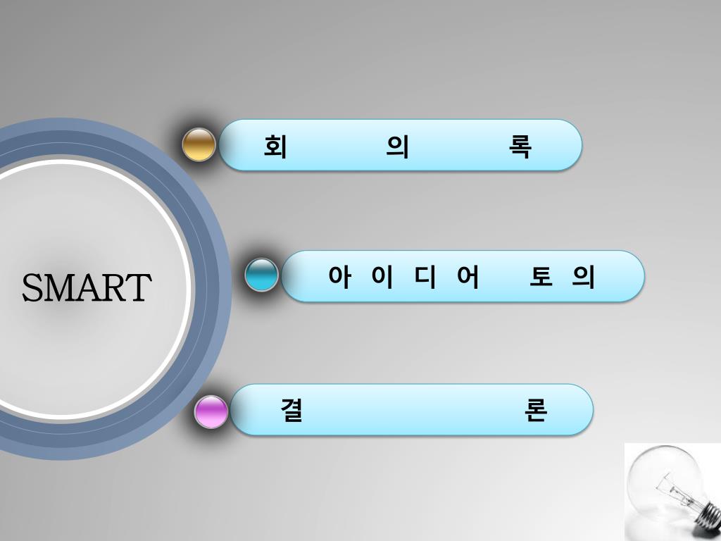 S M A R T. 200711344 유 주 영 200811174 김 상 현 200811597 최 기 훈. 회의록. 아이디어 토의. SMART. 결론. 회의록. 아이디어 토의. 7 호관 내에서 불편하다고 생각되는 곳. ㅜ. ㅡ. ㅡ. 1. 강 의 실. 1. 휴 게 실. 1. 학 습 실. ㅡ. ㅡ. 2. 화 장 실. 2. 전 산 실. 2. 실 험 실. 일상생활에서 불편하다고 생각되는 곳. 학 습 실. <- 7 호관 지하 학습실.
