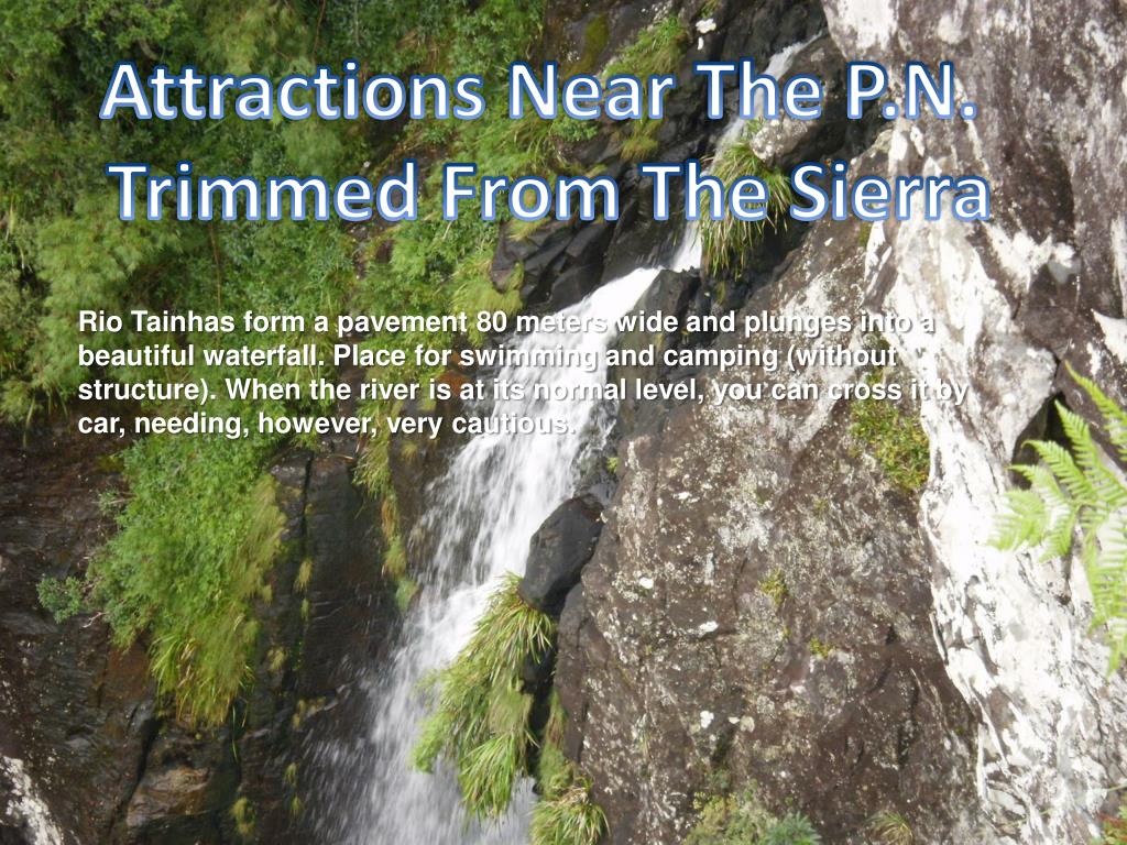 Attractions Near The P.N. Trimmed From The Sierra Rio Tainhas form a pavement 80 meters wide and plunges into a beautiful waterfall. Place for swimming and camping (without structure). When the river is at its normal level, you can cross it by car, needing, however, very cautious.