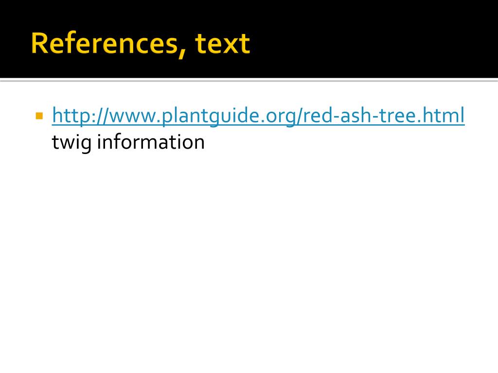 References, text • http://www.plantguide.org/red-ash-tree.html twig information
