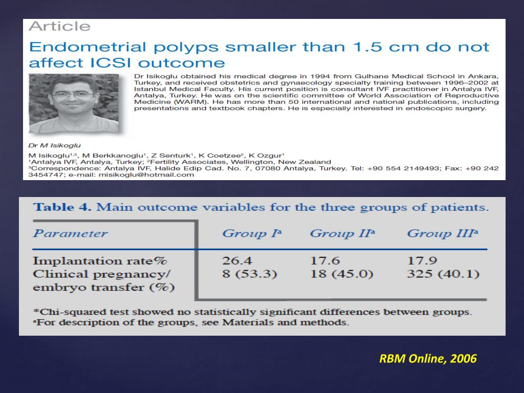 Office HysteroscopyafterRecurrent IVF/ICSI Failure(Bozdağ G et al., RBM Online, 2008)