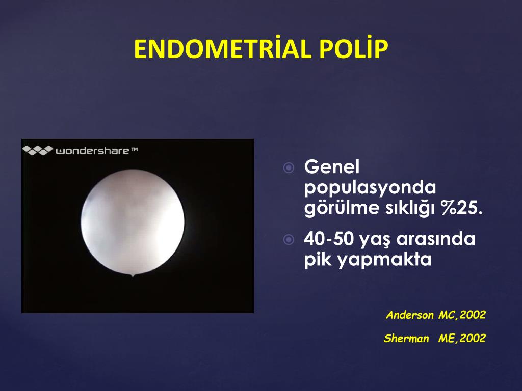ENDOMETRİAL POLİP • Genel populasyonda görülme sıklığı %25. • 40-50 yaş arasında pik yapmakta Anderson MC,2002 Sherman ME,2002