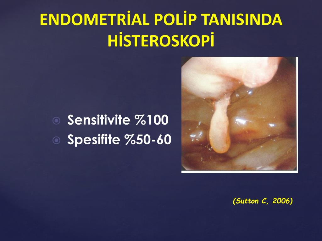 ENDOMETRİAL POLİP TANISINDA HİSTEROSKOPİ • Sensitivite %100 • Spesifite %50-60 • (Sutton C, 2006)