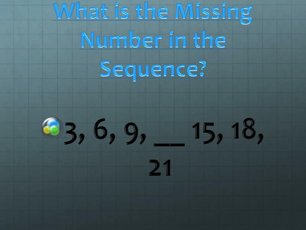 What is the Missing Number in the Sequence? • 3, 6, 9, __ 15, 18, 21