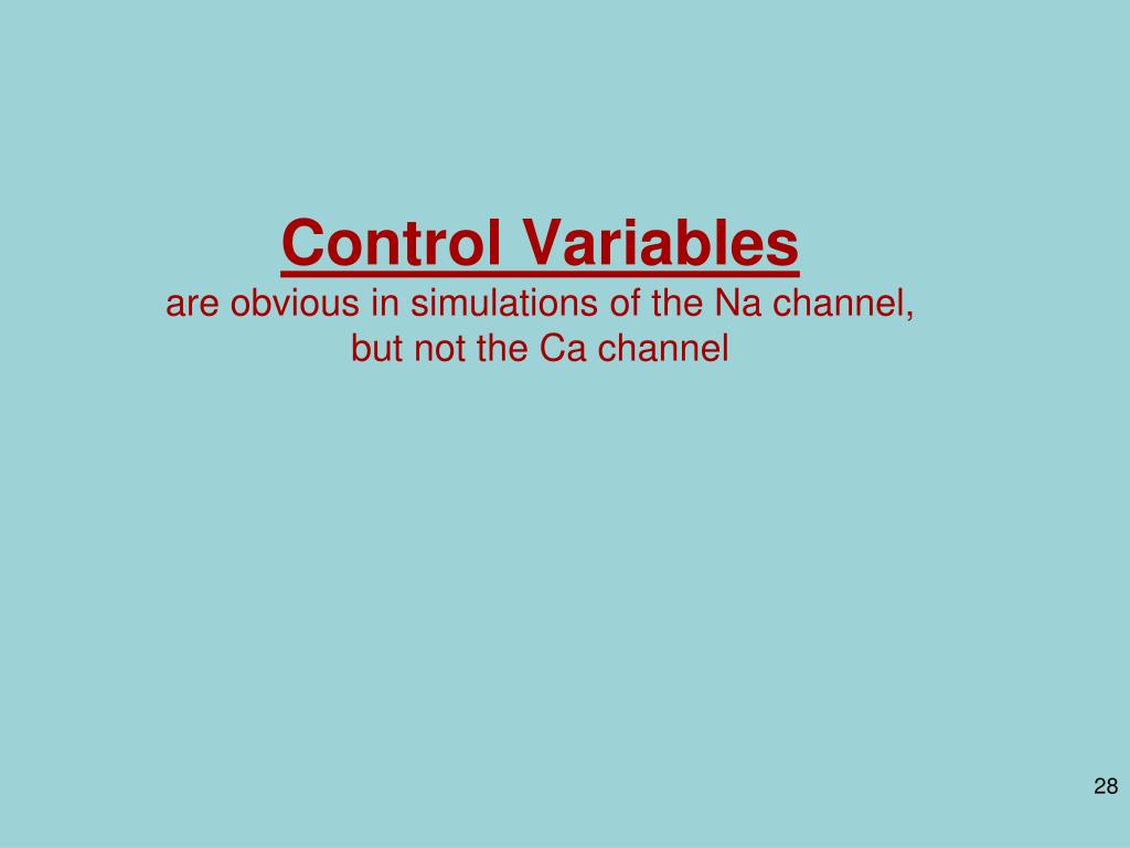 Control Variablesare obvious in simulations of the Na channel,but not the Ca channel