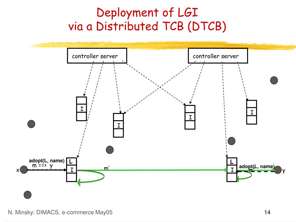 controller server controller server I I I I I I m ==> y y x m’ adopt(L, name) L L adopt(L, name) m’’ Deployment of LGIvia a Distributed TCB (DTCB)