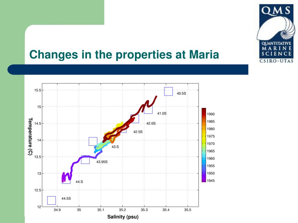 Changes in the properties at Maria Temperature (C) Salinity (psu)