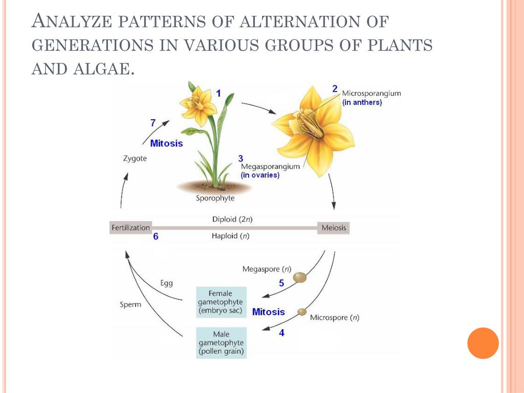 Analyze patterns of alternation of generations in various groups of plantsand algae.