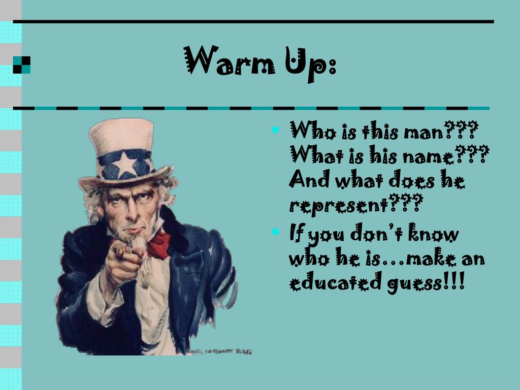 Who is this man??? What is his name??? And what does he represent??? If you don’t know who he is…make an educated guess!!! Warm Up: