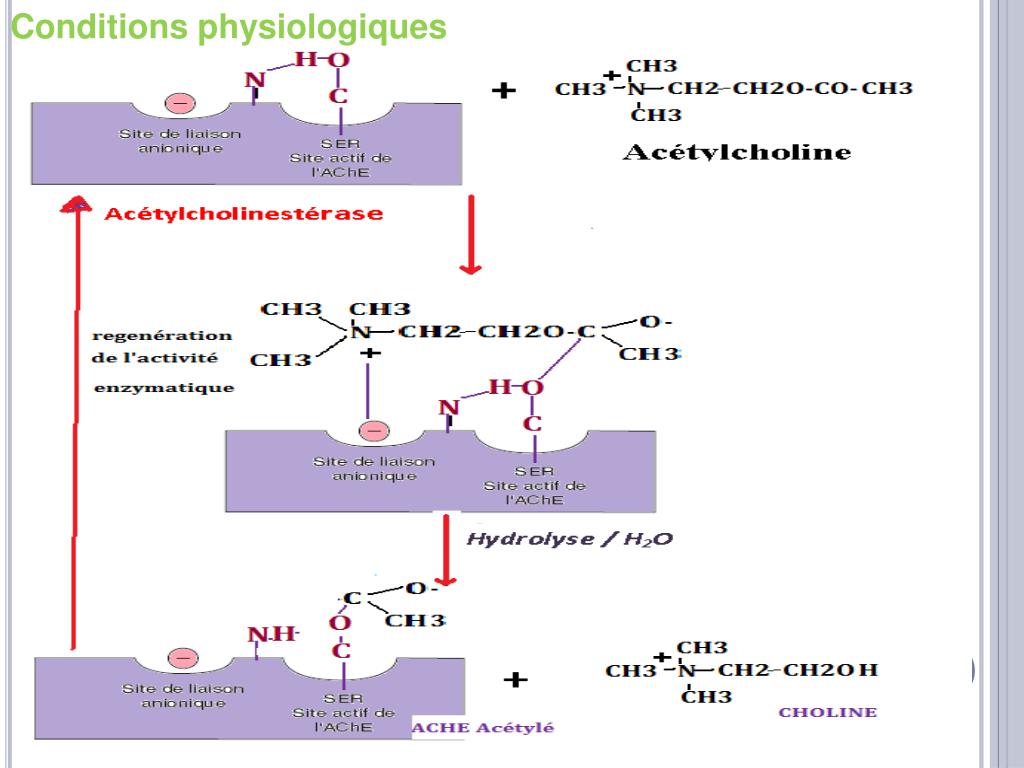 - Vitesse de réactivation dépend des groupements basiques : Totalement irréversible Paraoxon (vieillissement) Activité dépend de la synthèse de nouvelles molécules Régénération spontanée: diméthylphosphates , dichlorvos, diméthoate, malathion