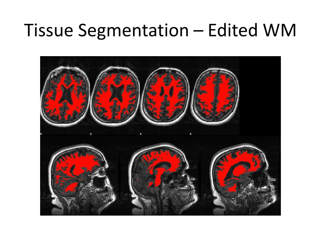 Tissue Seg. – WM Comparison • FAST WM vs. Edited SPM WM • I don’t think FAST does as bad a job as the Reiss group suggested