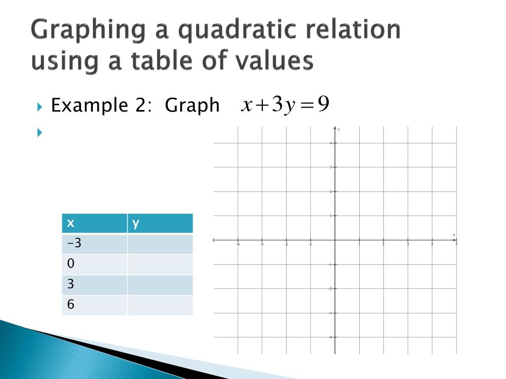 Graphing a quadratic relation using a table of values Example 2: Graph