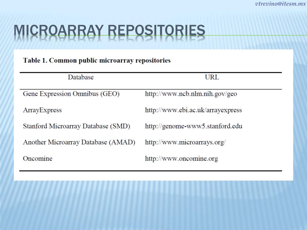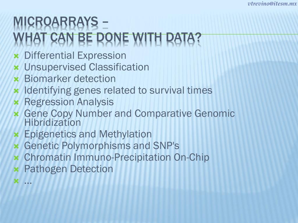 Functional Genomics I - Microarrays BioinformaticsDr. Víctor Treviñovtrevino@itesm.mxA7-421