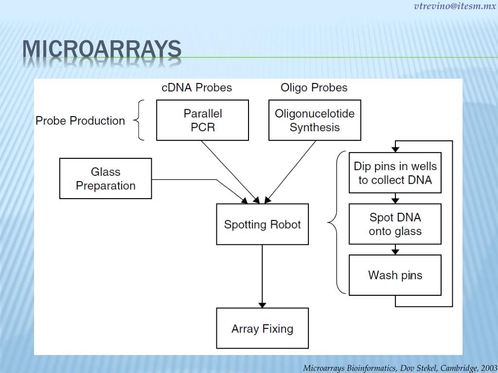 http://www.lbl.gov/Science-Articles/Archive/cardiac-hyper-genes.htmlhttp://www.lbl.gov/Science-Articles/Archive/cardiac-hyper-genes.html http://www.nrc-cnrc.gc.ca/multimedia/picture/life/nrc-bri_micro-array_e.html www.niaid.nih.gov/dir/services/rtb/microarray/overview.asp http://learn.genetics.utah.edu/units/biotech/microarray/genechip.jpg Microarrays Bioinformatics, Dov Stekel, Cambridge, 2003 http://metherall.genetics.utah.edu/Protocols/Microarray-Spotting.html