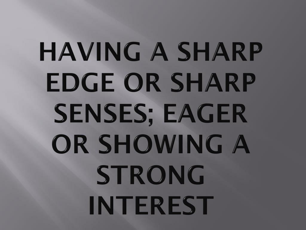Having a sharp edge or sharp senses; eager or showing a strong interest