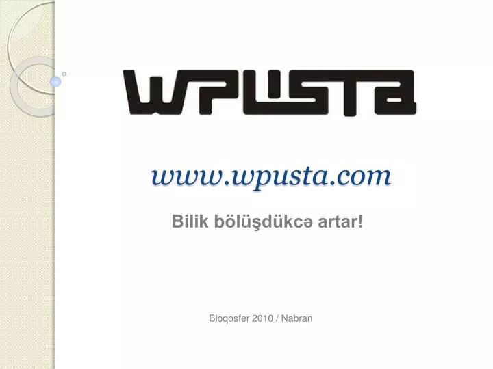 www. wpusta.com. Bilik b ölüşdükcə artar!. Bloqosfer 2010 / Nabran. İçindəkilər. WPUsta.COM Nədir? Üstünlükləri WPUsta Bloq Şəxsi bloq umu nec ə yarada bilərəm?. WPUsta.COM Nədir?.