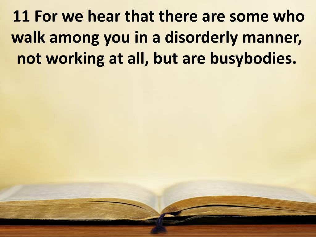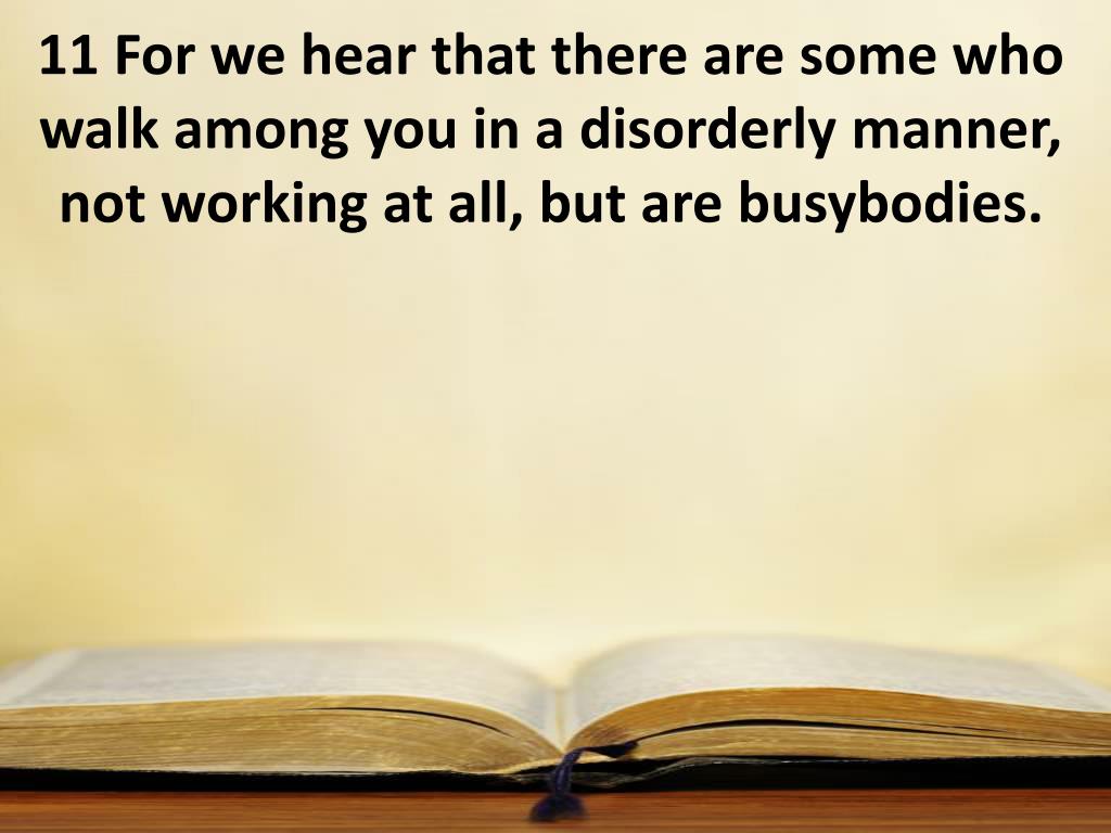 11 For we hear that there are some who walk among you in a disorderly manner, not working at all, but are busybodies.